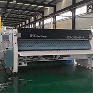 隧道式洗衣機配套設(shè)備之一,布草經(jīng)隧道式洗衣機預(yù)洗、主洗、漂洗出倉后自動進(jìn)入壓榨機進(jìn)行壓榨脫水。與傳統(tǒng)的壓榨設(shè)備相比,百強壓榨機采用 了先進(jìn)的經(jīng)過特殊設(shè)計的棱式壓榨頭 ,可以在壓榨過程中有效逐步去除布草中殘存 的空氣,防止在壓榨過程中因壓力過大出現(xiàn)布草爆損,大限度地保護(hù)布草的完好。 壓榨好的布草經(jīng)穿梭運輸機進(jìn)入烘干機進(jìn)行打散烘干。